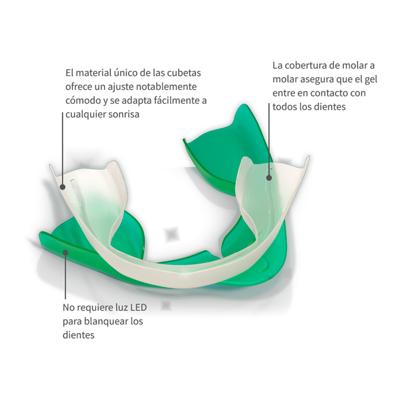 - El material exclusivo de la cubeta UltraFit™ ofrece un ajuste notablemente cómodo y se adapta fácilmente a la sonrisa de cualquier paciente