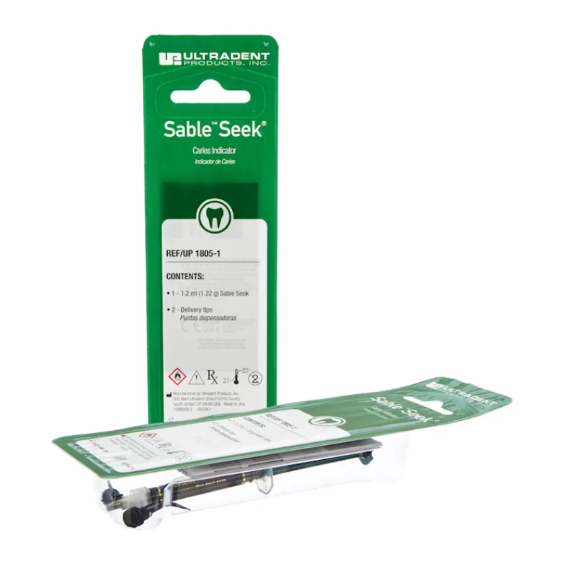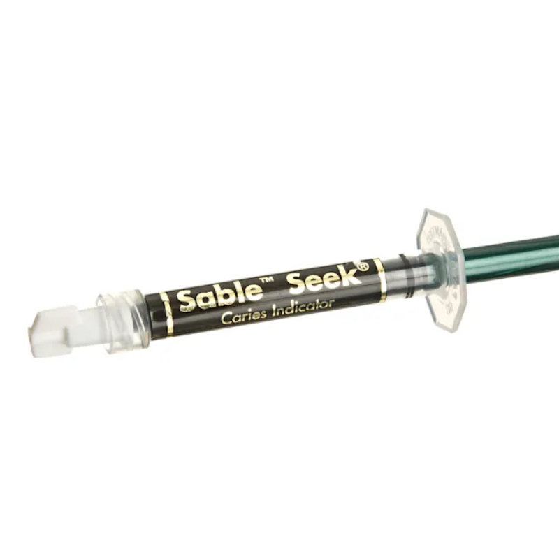 Los indicadores de caries Seek y Sable Seek tiñen la dentina desmineralizada y pueden resultar muy útiles para las áreas difíciles de ver, por ejemplo, socavaduras de preparaciones, dentina oscura, áreas a lo largo de la unión del esmalte y la dentina, etc. Tanto Seek como Sable Seek son una forma rápida y eficaz de localizar los orificios calcificados del conducto radicular.1–3 El indicador de caries Sable Seek verde ayuda a ver la descomposición en las caries profundas para evitar exponer la pulpa.